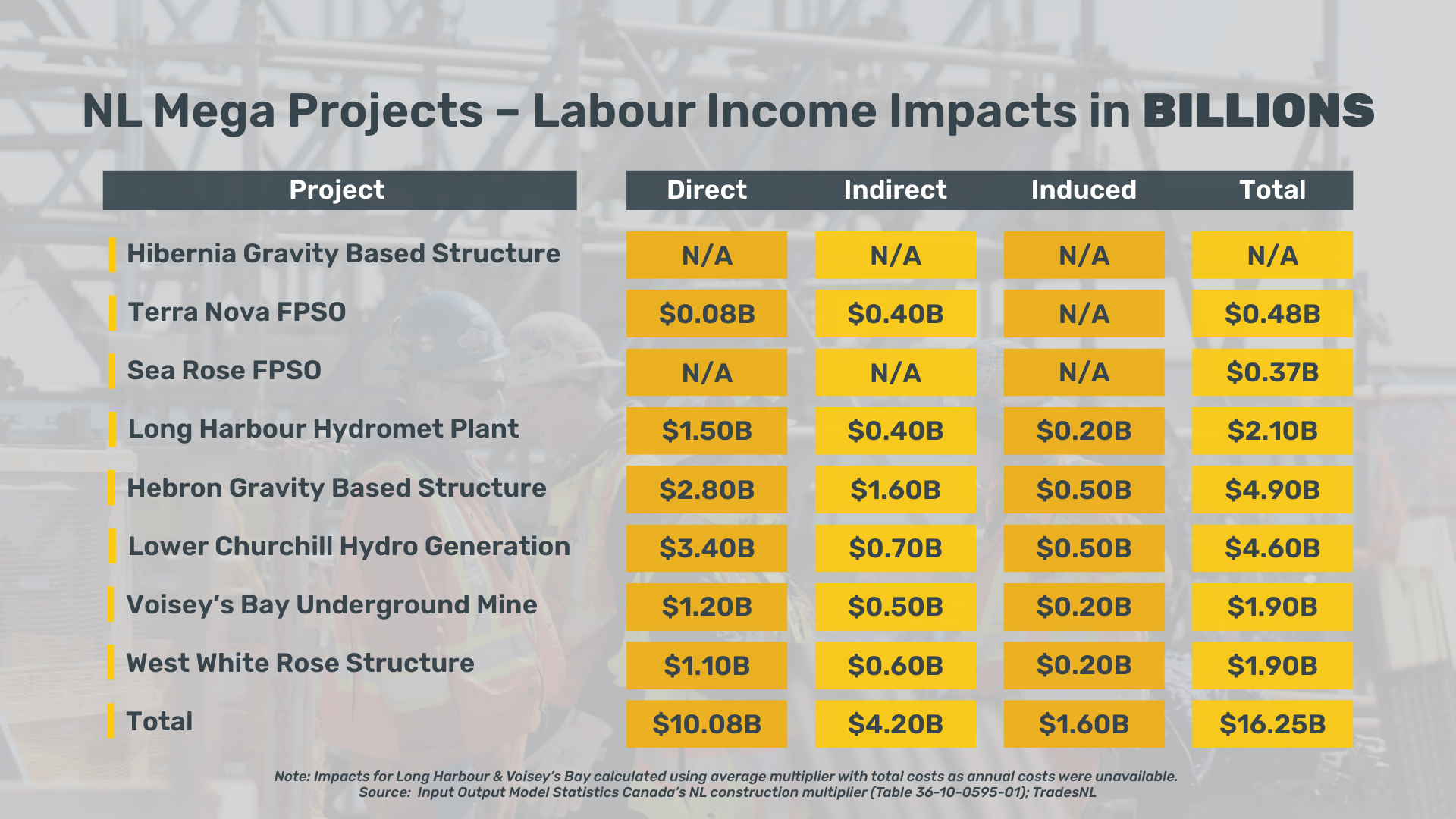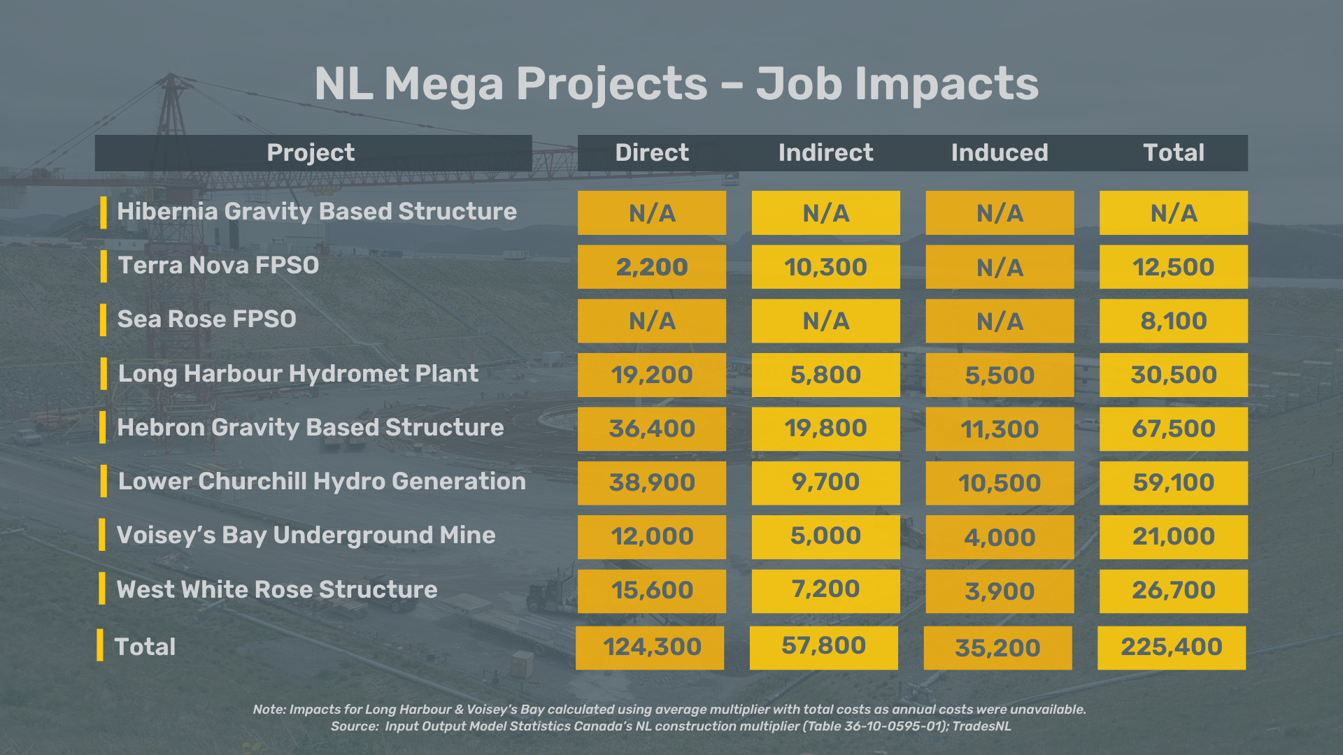 Together, these projects account for hundreds of millions of construction person-hours, with a significant portion of work completed by Newfoundland and Labrador workers.